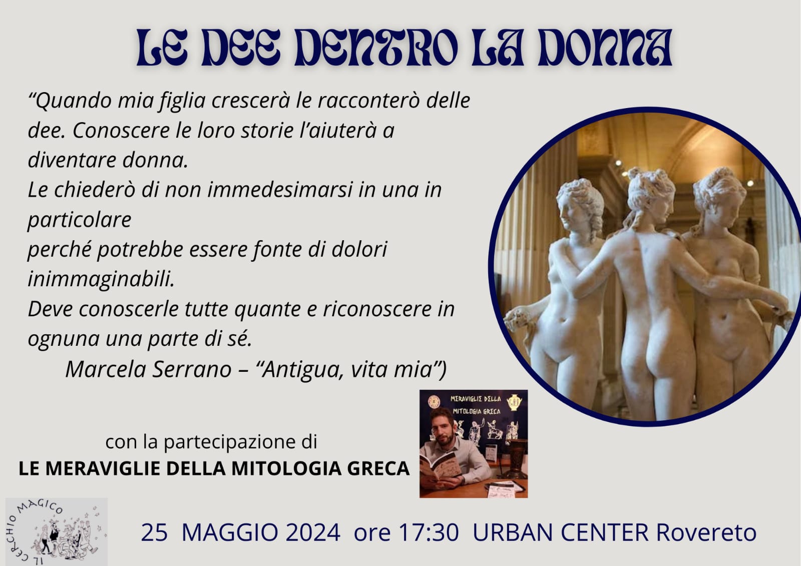 LE DEE DENTRO LA DONNA + Aggiungi a Google Calendar + iCal / Outlook export Data 25 Mag 2024 Concluso Ora 17:30 - 19:00 Costo Omaggio Etichette conferenza Luogo Urban Center Corso Antonio Rosmini, 58 - Rovereto Organizzatore Veronica Loperfido Altri organizzatori Insieme per Athena Condividi questo evento