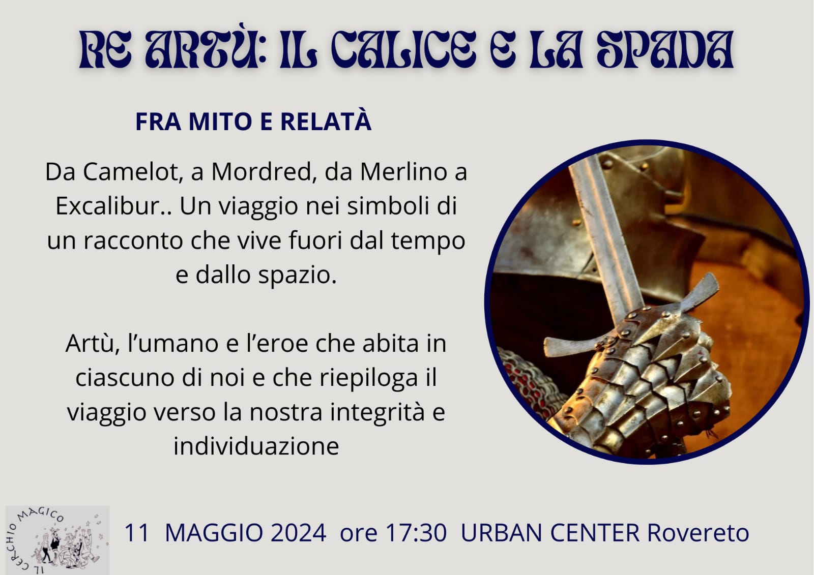 RE ARTÙ: IL CALICE E LA SPADA + Aggiungi a Google Calendar+ iCal / Outlook export Data11 Mag 2024Concluso Ora 17:30 - 19:00 CostoOmaggio Etichetteconferenza LuogoUrban CenterCorso Antonio Rosmini, 58 - Rovereto Organizzatore Veronica Loperfido Altri organizzatori Insieme per AthenaCondividi questo evento